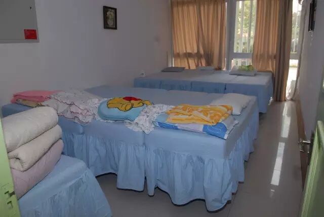 我们的午休室开始是两间,男女生各一间,有一面墙靠着玻璃,中间差不多有20厘米的一条缝,我有一天中午睡觉的时候,无意中看到另外一个房间里的值班老师,好像还是龙老师,她也看见我了,就跟我打招呼。这件事让我印象深刻,因为隔着房间也能聊天,哈哈。后来,学员越来越多,教室不够用了,我们只好把午休室合二为一了,老师们觉得还是要把男生和女生分开,就提出了用帘子一分为二的主意,我又有新的聊天方式了,而且又近,更方便沟通。