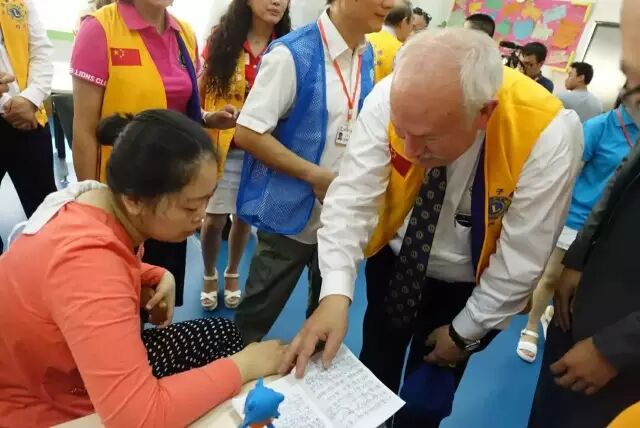 国际狮子会总会会长鲍勃科特一行看望善工家园早疗部的学龄前智障儿童和自闭症儿童,并对用于全世界的IEP个别化教育系统和善工家园特殊儿童康复训练方案进行了详细了解。