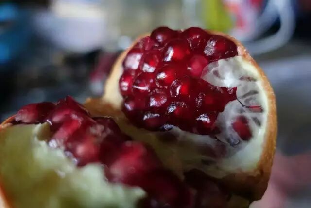 裂开露出晶莹石榴籽的时候;